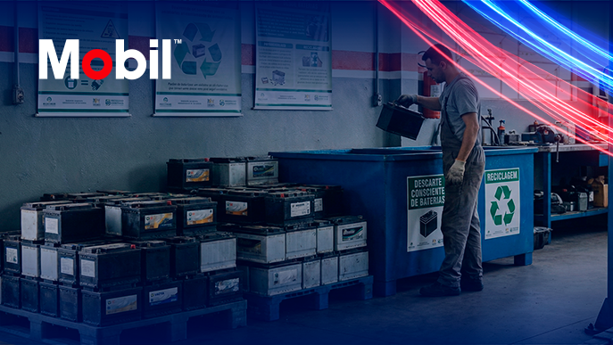 Na oficina, antes da devolução, a bateria usada precisa ser armazenada em local coberto, seco, ventilado e sobre paletes (nunca diretamente no chão) para evitar contaminação do solo por vazamento de ácido. Deve ficar separada de outros resíduos, como plástico, papel ou pneus. E o manuseio deve sempre ser feito com o uso de EPIs, por causa do risco de vazamento de produtos tóxicos.